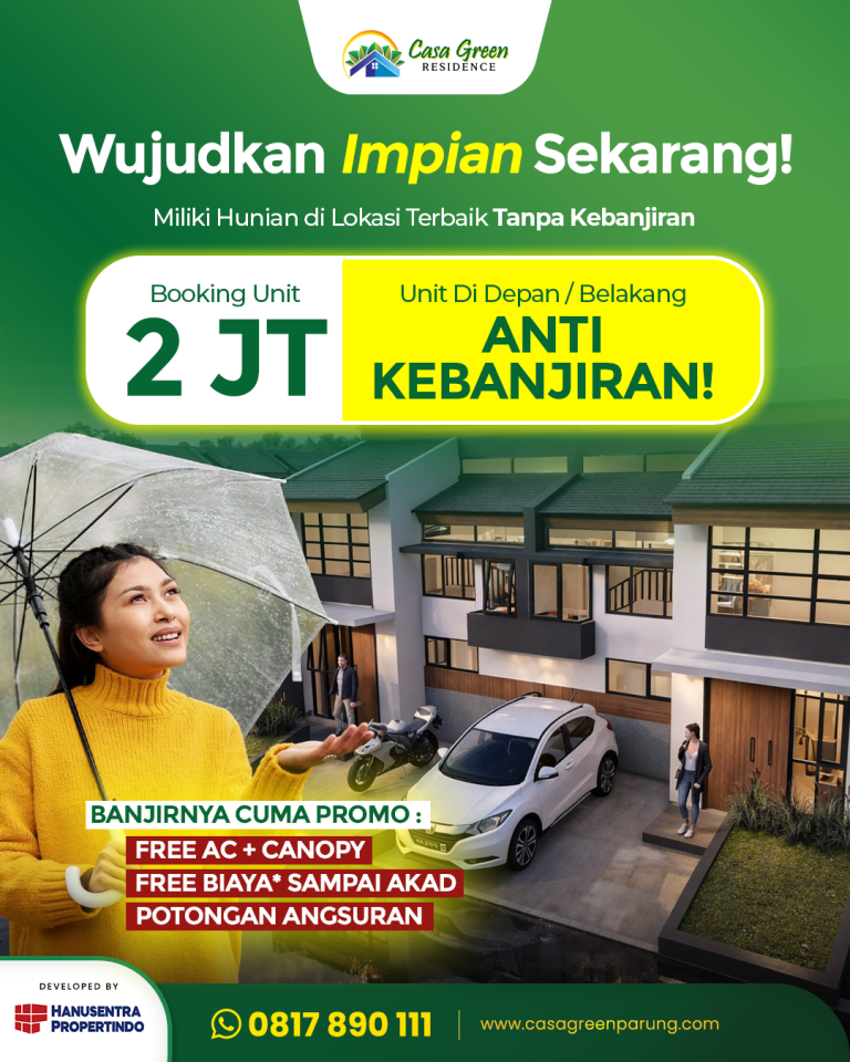 - Daerah di Casa Green Parung bebas banjir.
